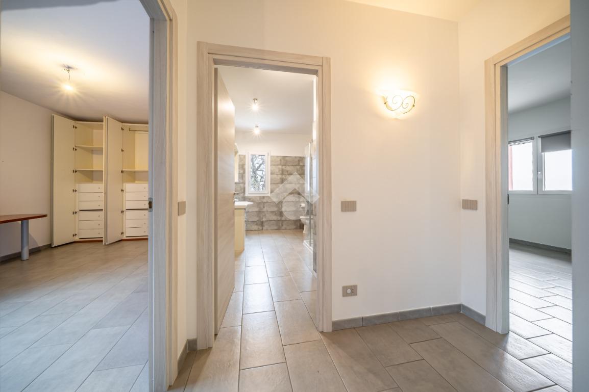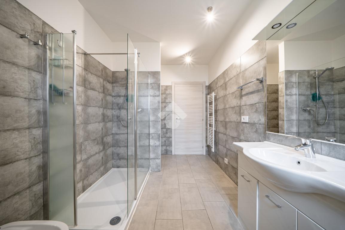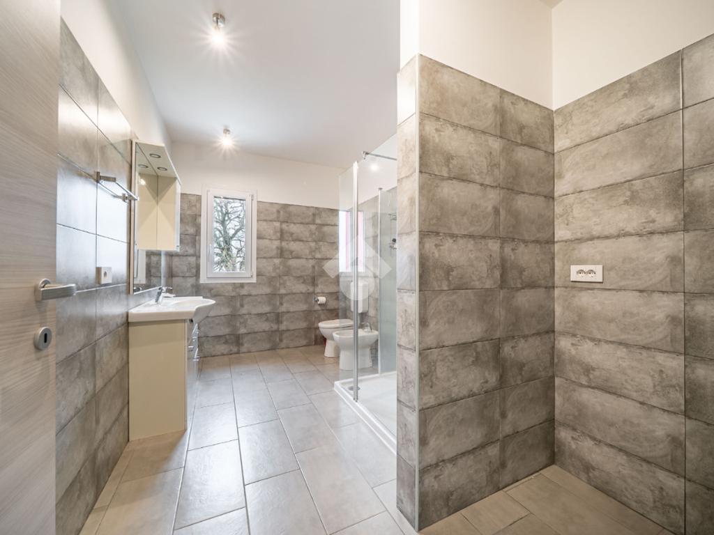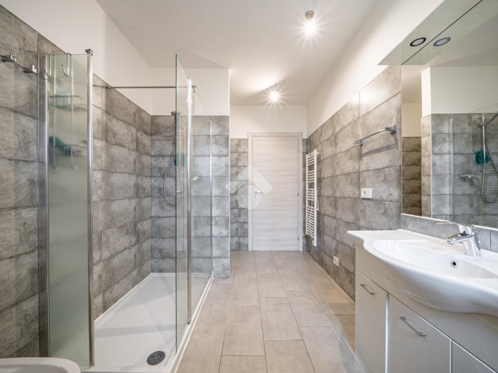 Attraverso il disimpegno si raggiunge la zona notte composta da un grande bagno con box doccia e predisposizione per lavatrice e asciugatrice. Due camere matrimoniali, entrambe ampie e luminose.