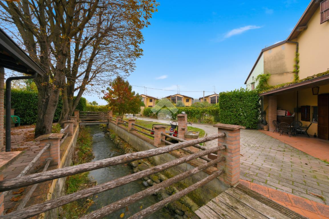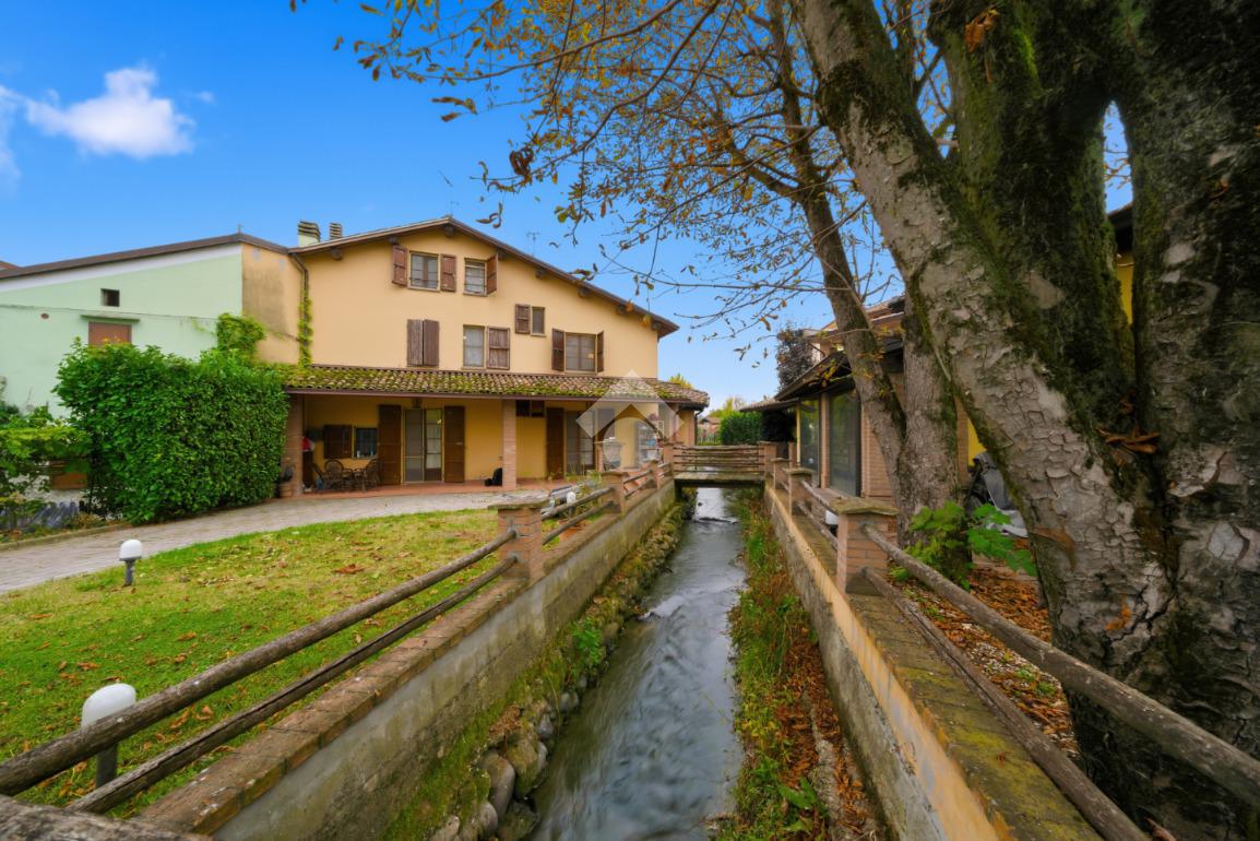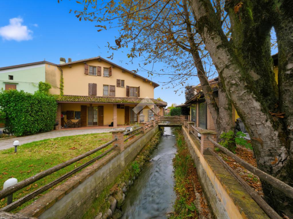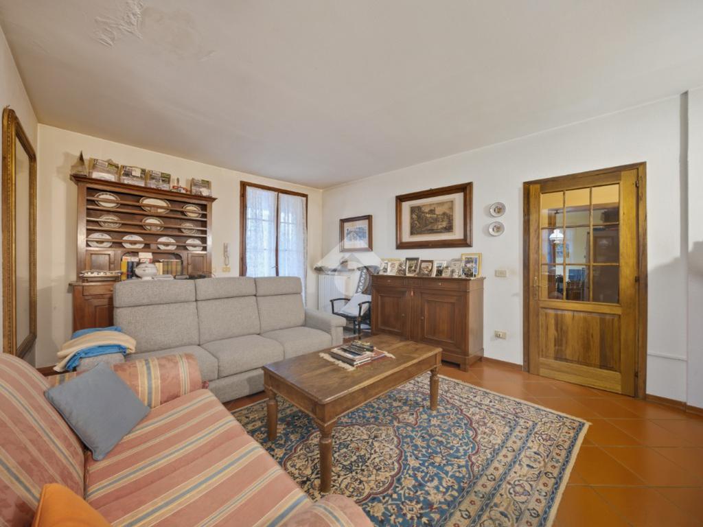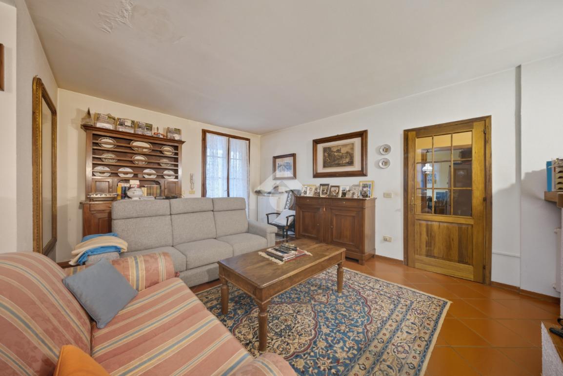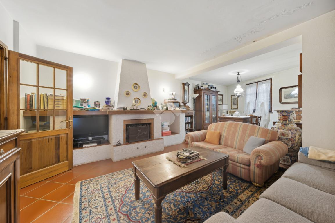 Qui sorge una soluzione semi indipendente dal fascino autentico, ristrutturata negli anni ’90 e pronta ad accogliere chi cerca un luogo in cui respirare aria di casa, natura e serenità. Appena varcato il cancello, si è accolti da un ampio giardino curato, dove un ruscello attraversa la proprietà regalando uno scenario unico e suggestivo. È facile immaginarsi qui, d’estate, con i bambini che giocano sull’erba o una cena sotto le stelle accompagnata dal dolce suono dell’acqua. Al piano terra, la zona giorno si apre su un ampio soggiorno luminoso, perfetto per accogliere gli amici o rilassarsi davanti a un film.