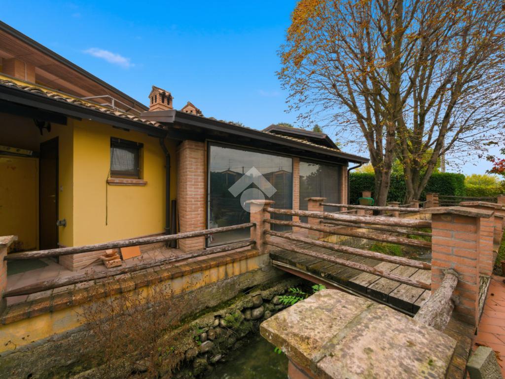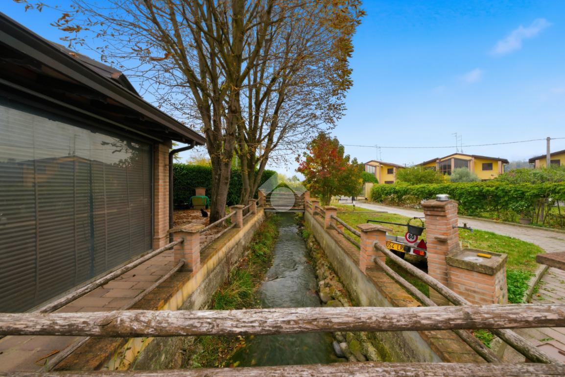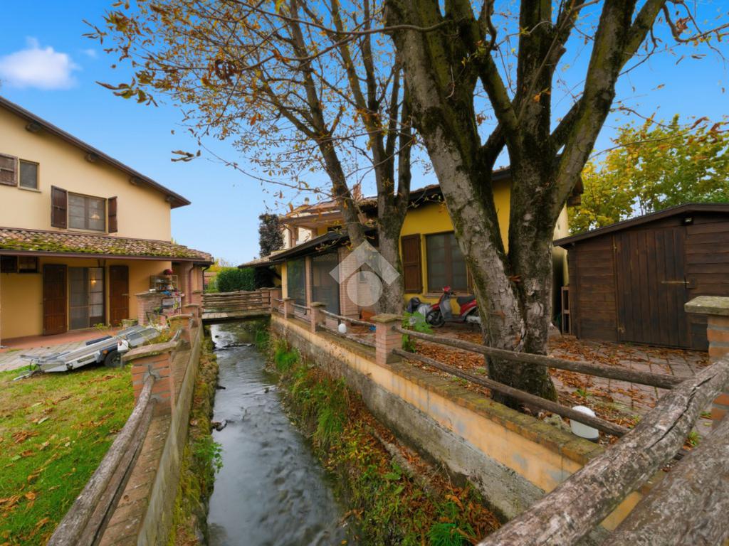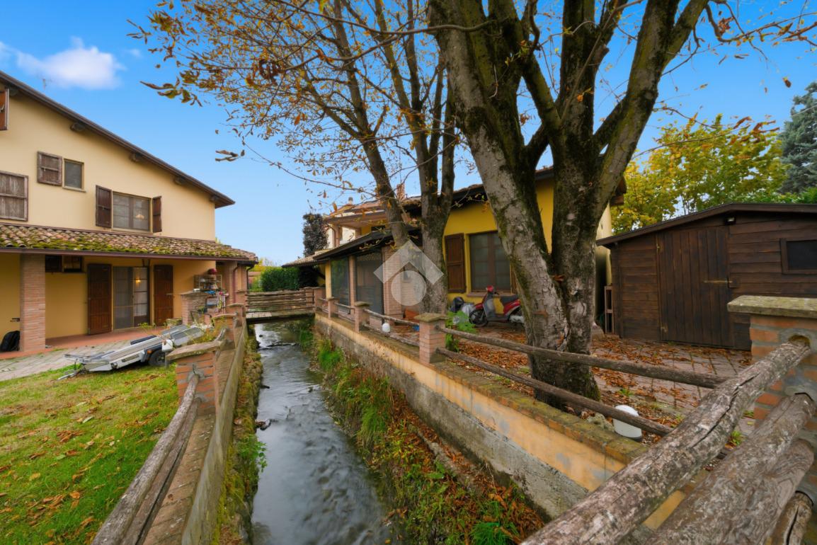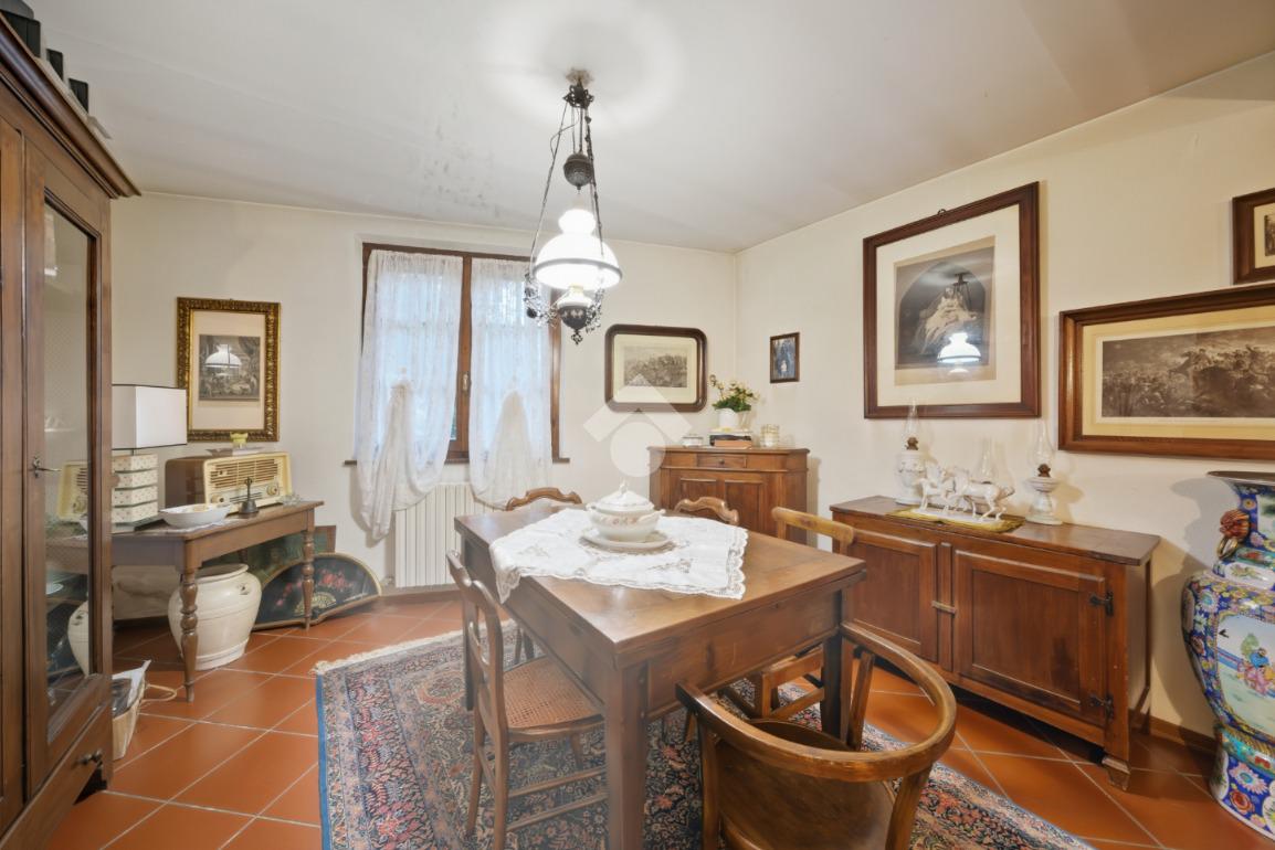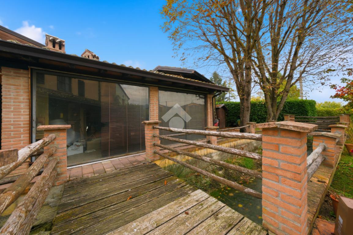 Qui sorge una soluzione semi indipendente dal fascino autentico, ristrutturata negli anni ’90 e pronta ad accogliere chi cerca un luogo in cui respirare aria di casa, natura e serenità. Appena varcato il cancello, si è accolti da un ampio giardino curato, dove un ruscello attraversa la proprietà regalando uno scenario unico e suggestivo. È facile immaginarsi qui, d’estate, con i bambini che giocano sull’erba o una cena sotto le stelle accompagnata dal dolce suono dell’acqua. Al piano terra, la zona giorno si apre su un ampio soggiorno luminoso, perfetto per accogliere gli amici o rilassarsi davanti a un film.