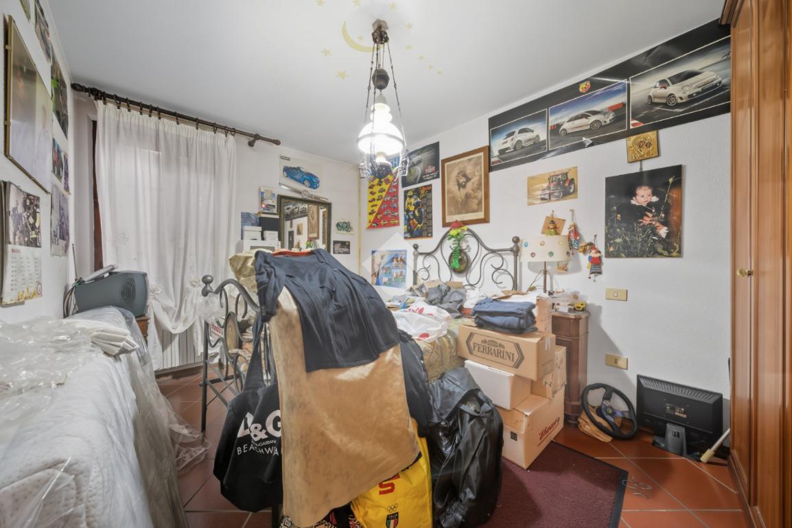 Salendo le scale, la zona notte si rivela accogliente e intima: due camere da letto, una delle quali con terrazzo privato dove gustarsi il caffè del mattino ammirando il verde circostante. La cabina armadio aggiunge praticità e ordine, mentre il bagno con box doccia è curato e funzionale. All’ultimo piano, una terza camera da letto offre uno spazio riservato e silenzioso — perfetto come studio, stanza per gli ospiti o rifugio personale. Completano il piano un secondo bagno e un piccolo ripostiglio.